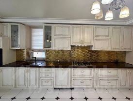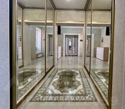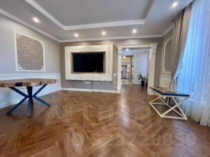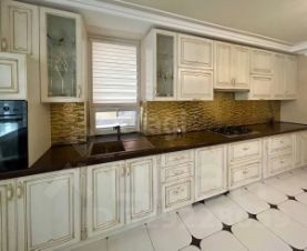 Снаружи дом облицован кирпичом, внутри выполнен ремонт в классическом стиле из дорогих и качественных материалов, установлена большая кухня со всей техникой и большой столовой группой, встроены шкафы и есть мягкая мебель.