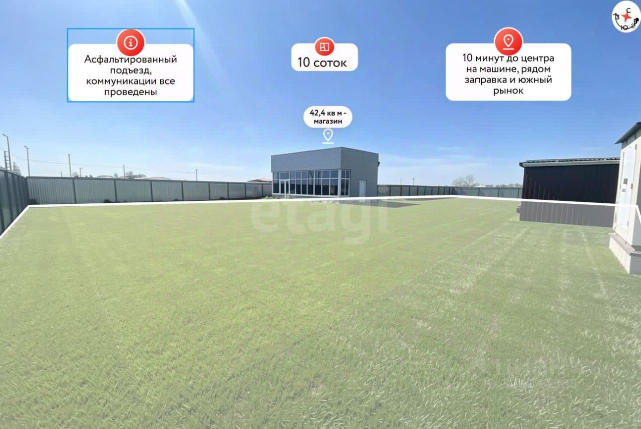 Участок 1: 10 соток. На участке расположен магазин площадью 42,4 кв. м с отделкой и санузлом. Собственная КТП с разрешённой мощностью до 100 кВт, недавно обслужена. Вода — скважина, септик объёмом более 10 куб. м. Участок огорожен забором на бетонном фундаменте.