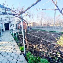 Дом жилой двухэтажный, блокированной постройки. Построен в 1982г. Общая площадь 100 кв.м. На первом этаже дома расположена кухня, площадью 8 кв.м., раздельный санузел и две спальни, 13 и 18 кв.м соответственно. Комнаты просторные, с большими окнами. Окна кухни выходят в свой сад.