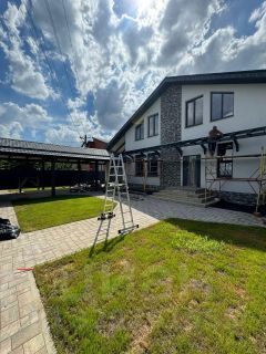 Дом полностью кирпичный, 2 этажа. В доме может комфортно разместиться большая семья. Очень практичная и современная планировка: большая кухня-столовая, гостиная, несколько спален, 2 санузла, просторная терраса, гардеробная, котельная с выходом во двор. Сделана качественная пред чистовая отделка, электрика, система отопления премиум класса, видео наблюдение, автоматический полив и т. Д.