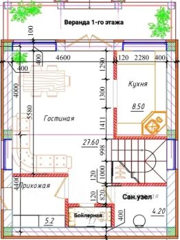 1-й этаж - гостиная, кухня, санузел, бойлерная, прихожая, терраса;