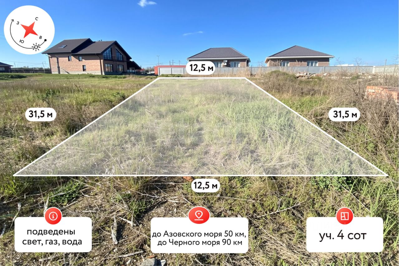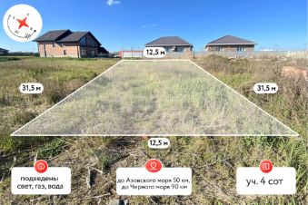 Земельный участок площадью 4 сотки с фасадом 12,5 метра, подходит под Семейную ипотеку.