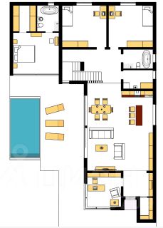 Бассейн Infinity — это, пожалуй, изюминка дома. Он встроен прямо в архитектуру, выглядит эффектно и создаёт атмосферу уединённого элитного курорта.