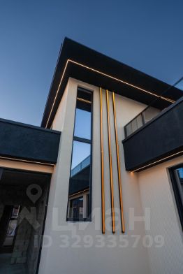 Дом построен на ленточном фундаменте из железобетонного каркаса, со стенами из керамзит-блоков, чтобы был прочный, надёжный и стоял десятилетиями. Фасад оформлен натуральной африканской липой Мербау — материал потрясающий: выглядит благородно и со временем не теряет вид. Стены покрыты качественной декоративной краской Dali Decor, а вечером, когда включается подсветка по всему фасаду, дом будто оживает — выглядит невероятно уютно и атмосферно.