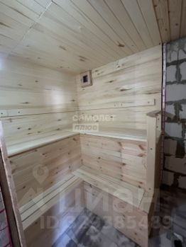 Сауна: комната отдыха, парилка, санузел. Выполнена черновая отделка (стены не оштукатурены, потолок подшит плёнкой и доской), в комнате отдыха электрический тёплый пол, окна пластиковые 2-х камерные. Стены из пеноблока с утеплителем, фасад покрыт короедом, крыша - мягкая кровля.