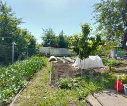 Участок радует глаз своей аккуратностью: здесь растут малина, клубника, плодовые деревья и цветы.