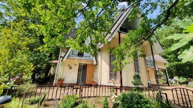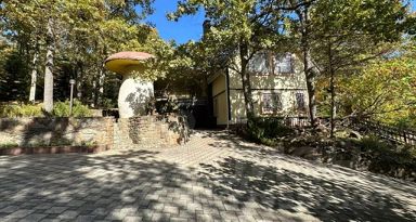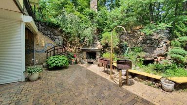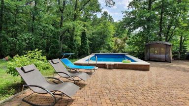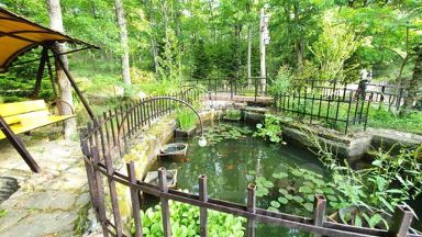 Это огромная зеленая лесная территория.Дом грамотно расположен и создано пространство вокруг для комфортного отдыха. Вы вьезжаете в СНТ, которое под охраной, через автоматические ворота на пульте ДУ. Проезжаете 300 м и перед вами вьезд, непосредственно на территорию усадьбы. Дом стоит выше, за домом лес (территория леса так же входит в собственность и огрожена). Ближайшие соседи очень далеко, что добавляет уединенности этому месту. Сначала вас встречает подьем на стоянку, волейбольная площадка, выше красивая беседка на пригорке и пруд с золотыми рыбками. Далее дом и большая придомовая территория, на которой лаундж-зона с плетеной мебелью, бассейн, зона шизлонгов, мангальная зона, крытая зона с мини-баром, и еще остается много места для танцев). Ниже детская площадка с турниками, песочницей. Территория благоустроена: все засажено елочками, можжевельником, деревьями, альпийские горки, помимо большого пруда, так же есть маленькие с кувшинками, везде садовые фигурки большие и маленькие, что добавляет сказочности этому месту. Большой плюс - это лес вокруг дома, огроженный забором, где можно прогуляться и даже собрать грибов. Через калитку можно выйти уже дальше, по лесу спуститься к реке.