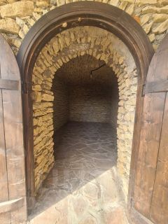 Участок оттеррасирован и отмощен природным камнем, металлоштакетный забор, выведено электричество, водопровод, освещение с световыми датчиками, ворота откатные автоматические.