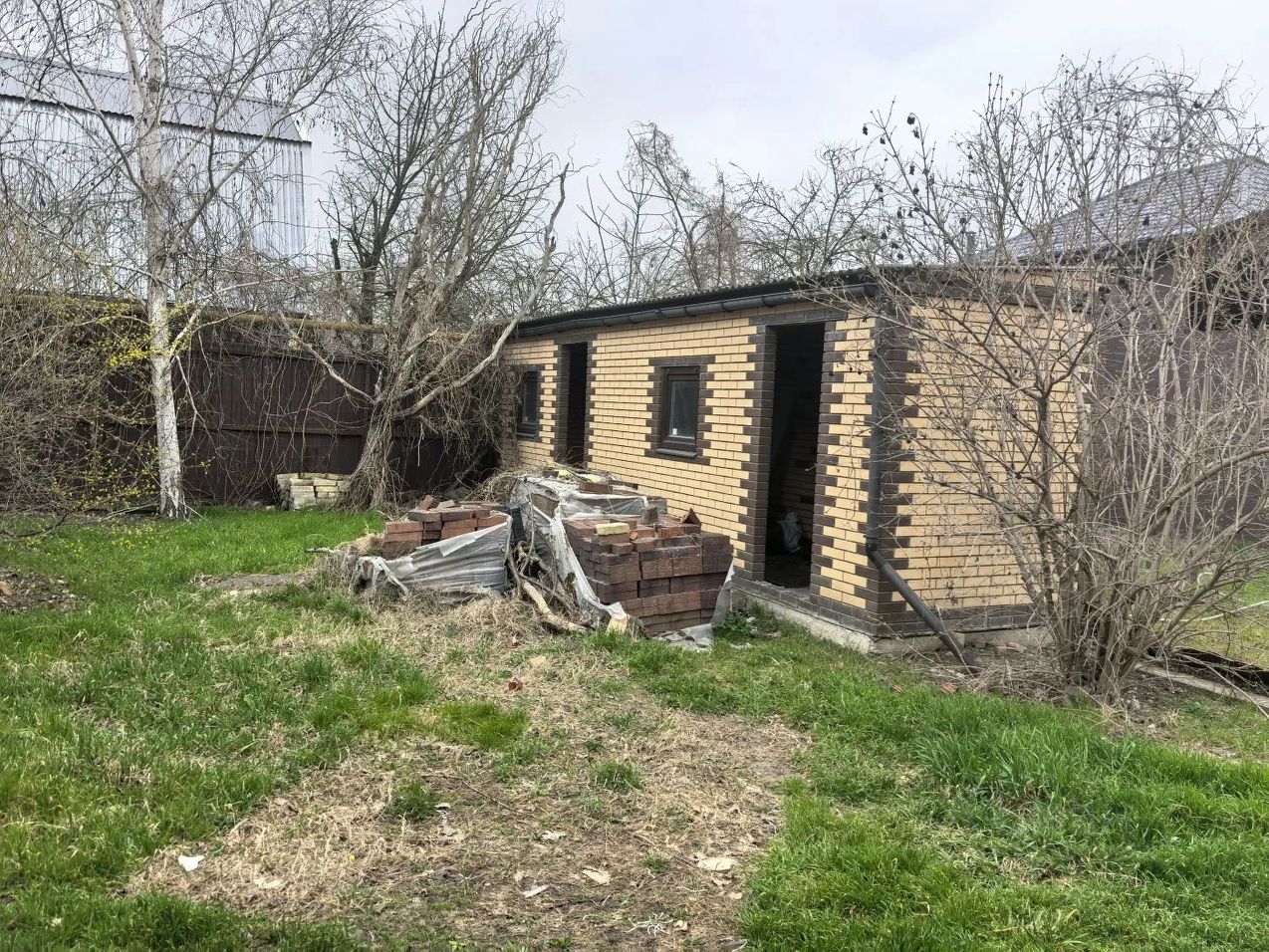 Продаю небольшой кирпичный дом на участке 8 сот. (два объедененных участка по длине вдоль дороги). Кроме имеющегося дома, на участке залит добротный фундамент под новый дом, имеются новые кирпичные хоз. постройки,новый ангар 10*10м. Участок поднят от уровня соседей на пол метра и огорожен забором из профлиста на высоком фундаменте. Имеются раздвижные ворота шириной в метров. Расположение участка - Остановка 9км.100 от Российского шоссе.