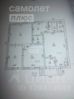 В доме имеется три спальни: площадью 6,8, 14,2 и 10,4 кв. м., а также зал площадью 18,6 кв. м., кухня 20 кв. м., ванная комната и санузел, а также коридор 2,4 кв. м. Высота потолков составляет 2,72 метра.