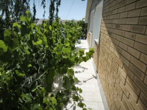 На втором этаже гостиная 30 м, две спальни (19,5 и 18,5), комната свободного назначения и санузел. Три комнаты имеют выход на просторные террасы, увитые виноградом.