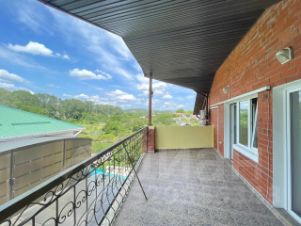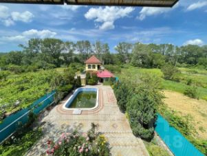 На территории участка расположен бассейн и ухоженный сад с зелеными насаждениями и цветами. Есть терраса, где можно наслаждаться свежим воздухом и видом на природу.