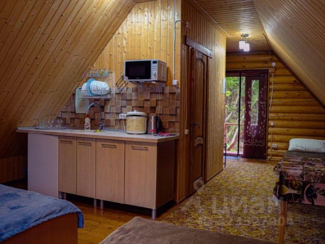 Семейная студия, 45 кв.м., 2 этаж бревенчатого дома с отдельным входом. В студии своя кухня, санузел, две двуспальные кровати. В студии есть кондиционер. Отдельная беседка к номеру.