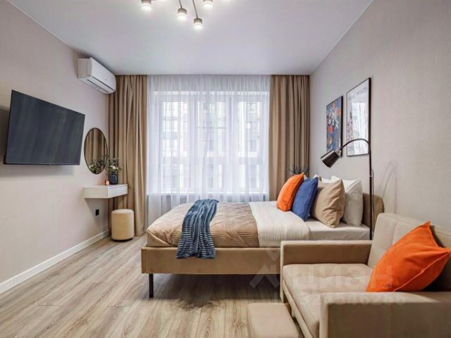 сдается посуточно уютная квартира студия с дизайнерским ремонтом и большой видовой лоджией.в квартире есть 2-х спальная кровать большой телевизор холодильник кондиционер.очень уютная видовая лоджия с прекрасным видом и витражным остеклением.рядом на территории ЖК есть ресторан,трен.зал.столовая магазины Пятёрочка и Магнит остановка у 100 метрах.напротив Спортивный комплекс Баскет-холл со спа центром бассейном и тренажерным залом.т.ж там проходят спортивные Соревнования концерты звёзд.в 10 мин.ТК Красная площадь .Выставочный комплекс и ЖК Немецкая деревня с озером и парком.дом с консьержем возможность позднего заезда.