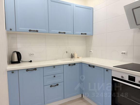 Полностью укомплектованная кухня-варочная панель, духовой шкаф с грилем и конвекцией, эл. чайник, вытяжной шкаф, холодильник, микроволновая печь, посуда,