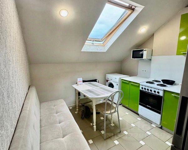 Сдаю 1-к. квартиру на 6 этаже-мансарда, есть удобный диван раскладной, большой шкаф, обеденный стол+стулья, диванчик на кухне, кухонный гарнитур, посуда, электроплита с духовкой, стиральная машина, бойлер, сдаю на длительный срок