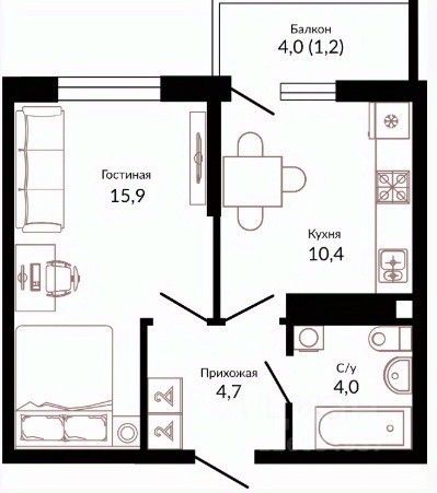 От года, 20 000 ₽ + 500 ₽ комм. платежи (без счётчиков), комиссия 60%, залог 20 000 ₽