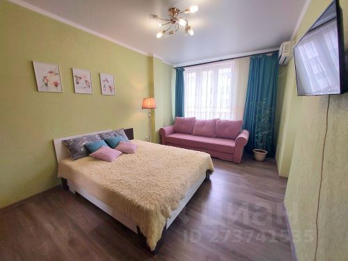 Предлагаем для проживания новую студию с хорошим ремонтом. Отлично подходит для жизни и отдыха. Из окна открывается вид на город. В студии имеется 2-х спальный диван-кровать - 1 шт, кресло-кровать - 1 шт. с ортопедическим основанием для удобства во время сна и отдыха, 2-х створчатый шкаф с плечиками, комод для размещения личных вещей, жк-телевизор, кондиционер. При входе расположена вешалка с зеркалом и обувной полкой. Имеется сушилка, гладильная доска, утюг, подушки, одеяла, постельное бельё, полотенца, пледы. С/у совмещенный: душ, унитаз, раковина со шкафчиками для хранения личных вещей и бытовой химии, фен. В кухонной зоне имеется мини-кухня, круглый обеденный стол с 3-мя стульями, холодильник, микроволновая печь, чайник, 2-х комфорочная электроплита, вытяжка, кухонная посуда и приборы. Доступ в интернет есть по wi-fi. Заходи и живи!