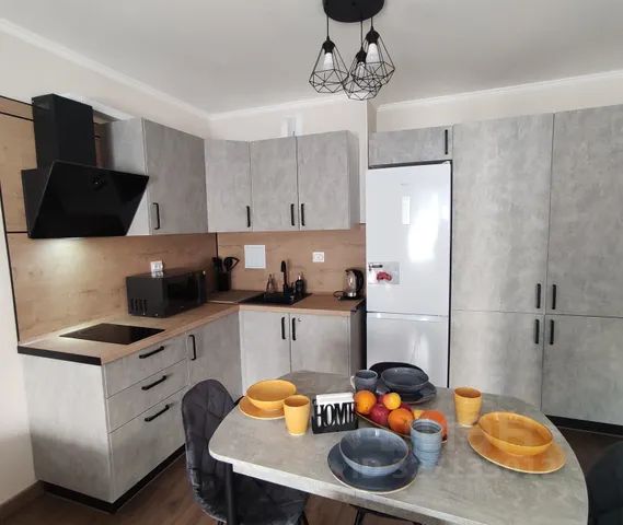 Комплектация: туалетные принадлежности (гель для тела, шампунь, тапочки, зубные щетки и пасты, туалетная бумага, капсулы для стирки), чай, конфеты, двуспальных диван, двуспальный диван, постельное белье, полотенца, телевизор, варочная поверхность, духовой шкаф, микроволновая печь, холодильник, стиральная машина, кондиционер, набор посуды и столовых приборов, чайник, фен, утюг, глад. доска, сушилка, интернет.