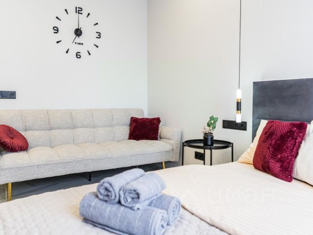 В спальне большая двухспальная кровать, в гостиной большой диван-кровать и еще один поменьше. 3 сплита зима-лето (в каждом помещении). Полноценное, удобное рабочее место.