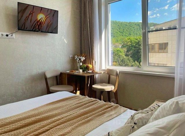 Уютная студия от "Славно" в новом ЖК "Монако" в Агое с уединенным расположением и видом на горы, с новым стильным ремонтом, отлично подойдет для спокойного отдыха у моря. Площадь апартаментов - 21 кв.м, в них есть всё необходимое для комфортного проживания двоих гостей с доп. местом для третьего гостя. На территории комплекса находится зона для отдыха с барбекю, спортивная и детская площадки.