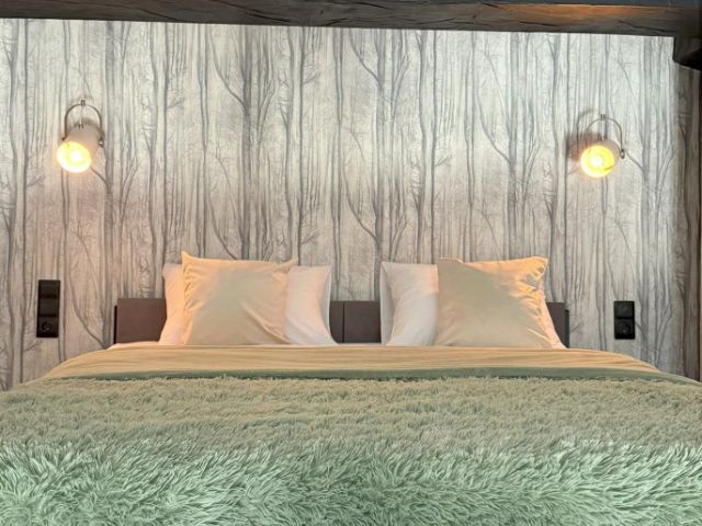 • Размещение 4 гостей в номере: двуспальная кровать и двухместный диван