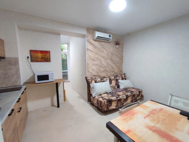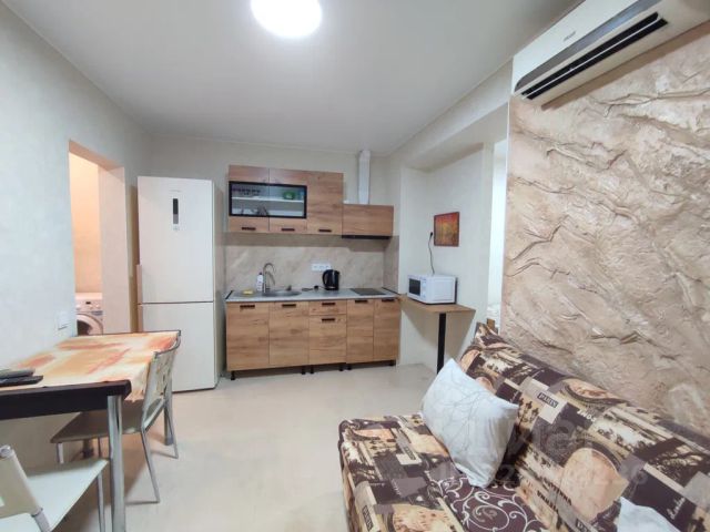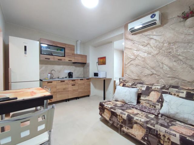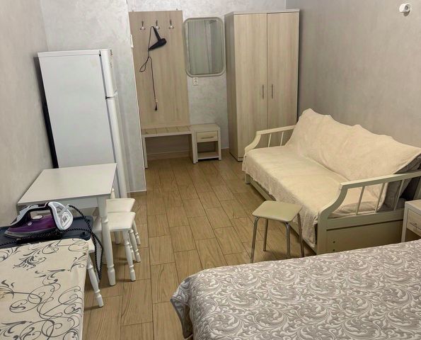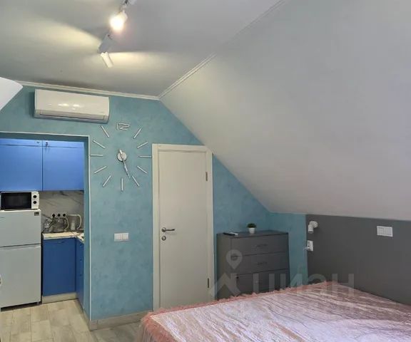 Это достаточно просторная однокомнатная квартира на втором этаже четырехэтажного коттеджа, в которой с комфортом может разместиться до трех взрослых человек или двое взрослых и двое детей.