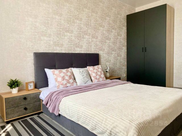 -Ортопедический матрас, шторы блэк аут. -Сплитсистема. -Полностью укомплектованная кухня (холодильник, варочная панель, микроволновая печь, чайник, посуда (столовая и для готовки), бокалы, штопор, а также чай, кофе, сахар, соль -Стиральная машина+капсулы для стирки(порошок), утюг, гладильная и сушильная доски.