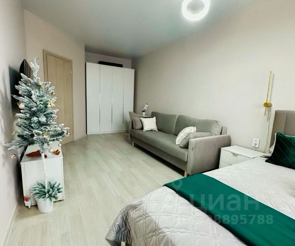 - Площадь: комната 12м², кухня-студия 18 м², застеклённый балкон.