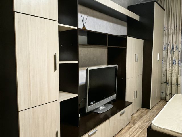 Есть вся мебель, спальное место: односпальная кровать, из бытовой техники: сплит-система, телевизор, стиральная машина-автомат, СВЧ-печь, холодильник, утюг, электрочайник.