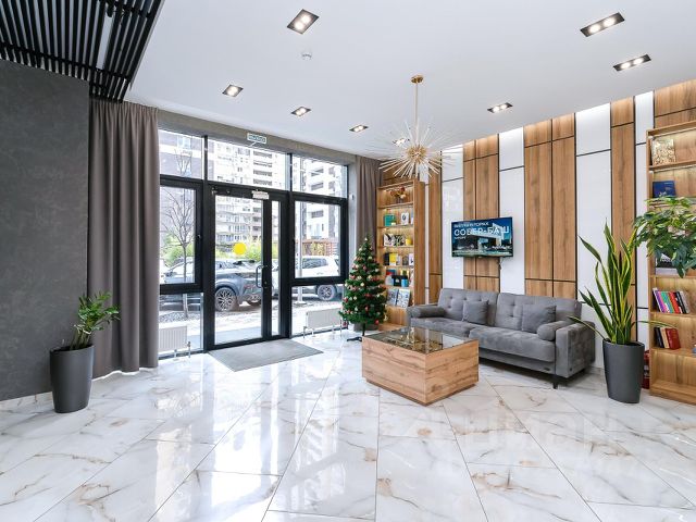 На первом этаже дома есть вся распространённая коммерция: кофейни, барбершоп, столовая/кафе, суши-бар, салоны красоты, продуктовые магазины, ремонт бытовой техники, компьютерные мастера, пункты выдачи: Ozon, Wildberries, Яндекс маркет, мед. лаборатория CI Lab.