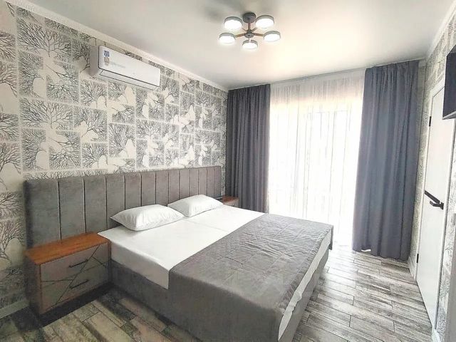 Есть всё необходимое для комфортного проживания и отдыха: кондиционер, телевизор, комод, напольная вешалка для одежды, собственная кухня с холодильником, микроволновой печью, индукционной плитой, чайником и посудой; бойлер, в душе всегда горячая вода с хорошим напором. Раздельные душ и туалет. Также есть стиральная машинка в общей зоне двора, пользование без доплат. Во дворе можно отдохнуть в беседке в тени винограда, в гамаках под абрикосовым деревом. В зоне барбекю есть мангалы с шампурами и решёткой. Для детей песочница, игрушки, качеля-гнездо, гамаки, каркасный бассейн диаметром 3,5м. При необходимости можем поставить детскую кровать манеж.