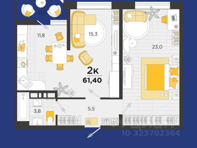 Сдам квартиру по адресу Г. Краснодар ул Героя Яцкова . Квартира находится на 8 этаже из 24. Всего 2 комнаты, общая площадь - 60 кв. м. (жилая -40). Квартира с ремонтом. В обеих комнатах есть вся необходимая мебель, в прихожей есть большой шкаф- купе с зеркалом. Высокоскоростной интернет. Полностью оборудована кухня:холодильник, плита индукционная, духовка, микроволновка, чайник, небольшой набор посуды. Санузел совмещённый, есть стиральная машина. Окна выходят на улицу и двор. Квартира сдаётся на срок от года платёжеспособным жильцам без животных. Цена 35 тысяч в месяц + страховой депозит 35 тысяч.