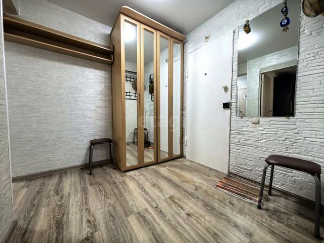 В прихожей есть шкафы для одежды, полка для обуви, зеркало.