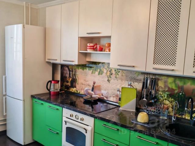 На кухне - кухонные шкафы, холодильник (НОВЫЙ), вытяжка, газовая печь, духовка электрическая, стол, кондиционер.