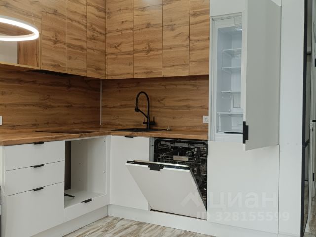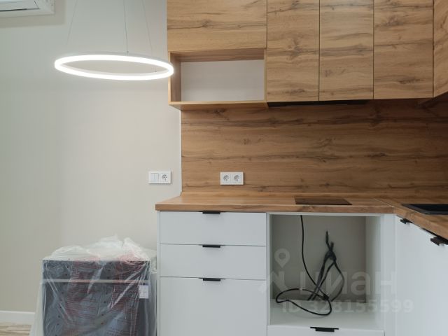 Кухня-гостиная (19 м²): посудомойка 60 см, духовка, индукционная плита, холодильник, микроволновка, фильтр питьевой воды, раскладной диван, телевизор 55'', кондиционер.