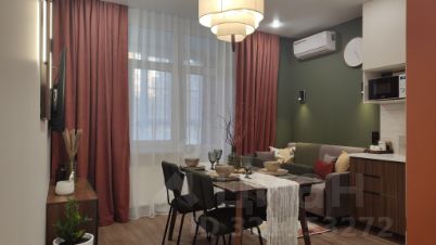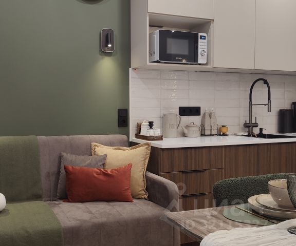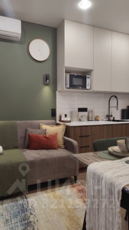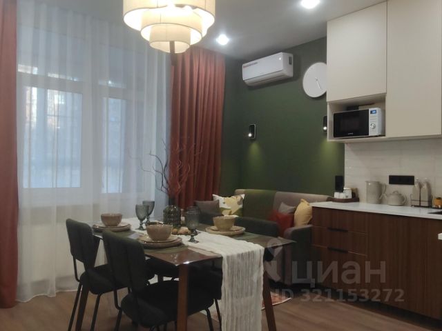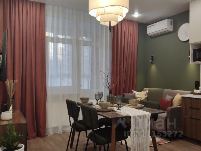 Экстравагантная кухня-гостиная 14 кв.м оснащена необходимой техникой: холодильник, индукционная панель, духовой шкаф, посудомоечная машина, кофеварка, микроволновка, встроенная вытяжка, блендер, тостер, бутербродница, электрочайник, большой телевизор 50 диагонали, сплит. система. Также в комнате есть раскладной диван, раскладывается в спальное место 140*200. Вся необходимая для жизни посуда, вплоть до ложек.