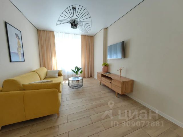 В квартире (56 м2) большая кухня (14 м2) и две комнаты (15 м2), совмещенный санузел, застекленный балкон.