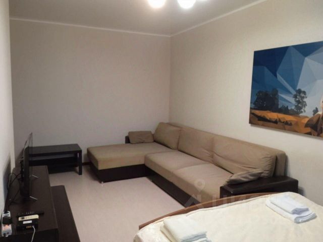 Спальня: большая двуспальная кровать (ширина 1,6 м), комод, телевизор, сплит-система, на полу теплый палас, чистое постельное бельё.