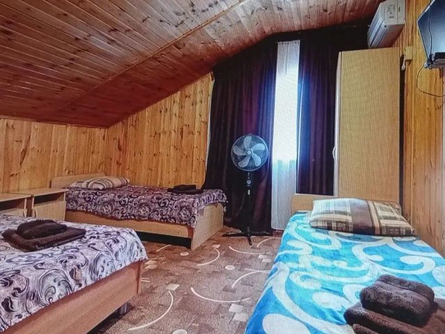 Приглашаем отдохнуть в уютном экономере гостевого дома "Морское Небо", расположенном на живописном Азовском побережье. Здесь гармонично сочетаются спокойствие уединённого отдыха и удобная доступность всех необходимых объектов инфраструктуры. Расположение Гостевой дом находится в тихом переулке — здесь вас ждёт покой и умиротворение вдали от шумных туристических троп. При этом всего в 5 минутах ходьбы — центр посёлка с его удобствами: * большой магазин "Пятёрочка" с банкоматами; * прилавки с сельскохозяйственными продуктами домашнего производства; * автобусная остановка с маршрутным такси; * множество небольших магазинчиков; * вещевой рынок. До широкого песчаного пляжа — всего 10 минут пешком (590 м). Вы сможете легко сочетать активный шопинг и бытовые дела с расслабленным пляжным отдыхом. Особенности гостевого дома В гостинице всего семь номеров — это гарантирует камерную атмосферу и повышенное внимание к каждому гостю. На территории: * бассейн с подогревом — идеальное место для расслабления в любое время года; * зелёная зона с обилием растений и деревьев, создающая приятную тень и свежий воздух; * детская площадка — дети будут в восторге от безопасных и интересных развлечений; * зона барбекю — отличное место для дружеских встреч и семейных пикников; * большая общая кухня, полностью оборудованная всем необходимым для самостоятельного приготовления пищи (в 30 м от номера) — готовьте любимые блюда с комфортом. Описание номера Экономер площадью 30 кв. м отделан деревом — это создаёт особую тёплую и природную атмосферу. В номере есть всё для комфортного проживания: * двуспальная кровать; * двухместный диван; * комод; * платяной шкаф; * большой холодильник с морозильной камерой; * сплитсистема (обеспечит комфортную температуру в любую погоду); * ЖКтелевизор с цифровым ТВ; * бесплатный беспроводной интернет; * санузел с душем, подачей горячей и холодной воды; * библиотека (чтобы скрасить вечера); * собственная веранда с обеденным столом и четырьмя стульями — идеальное место для утреннего кофе или вечернего чаепития с видом на зелень *кухня, полностью оборудованная всем необходимым для самостоятельного приготовления пищи — готовьте любимые блюда с комфортом.. Погрузитесь в атмосферу спокойствия и гармонии: наслаждайтесь морским бризом, зеленью вокруг, близостью к пляжу и удобством расположения гостевого дома. Гостевой дом "Морское Небо" — ваш идеальный выбор для отдыха на Азовском море!