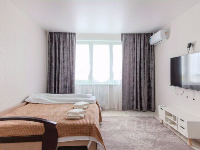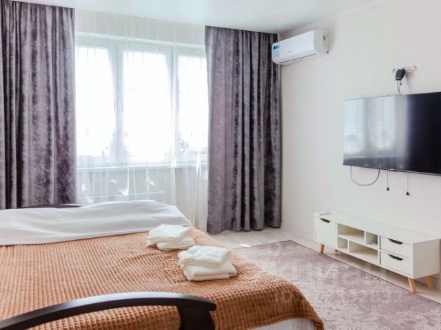 Сдается уютная и чистая студия в ЖК Трио на 6 этаже 20 этажного жилого дома. В квартире имеется все для комфортного проживания и отдыха. В спальной зоне студии расположен большой двуспальный диван, односпальный диван,есть раскладушка и чистое постельное белье для всех спальных мест. В ванной комнате есть ванная, умывальник, стиральная машина, чистые полотенца, средства гигиены, фен. Кухонная зона расположена в просторной гостиной, где имеется электрическая плита, микроволновка, посуда для приготовления пищи, тарелки, кружки, бокалы, столовые приборы. Так же в кухонной зоне находятся обеденный стол т стулья. Рядом большой телевизор и кондиционер. На балконе есть сушилка для белья гладильная доска и утюг. В прихожей имеется просторный шкаф-купе. Во дворе дома есть детская и спортивная площадки, много красивых клумб с цветущими круглогодично цветами. Прекрасное место для отдыха. Рядом с домом расположены магазины Пятерочка, Магнит Магнит 24, фитнес залы, аптеки, множество магазинов одежды и пром товаров, кафе, ТЦ Красная Площадь, Табрис, кафе Старик Хинкалыч с очень вкусной кавказской кухней. Вечером можно прогуляться по Крещенскому парку, парку Орехова роща, пройтись по набережной, попить вкусный кофе. До моря пешком 15 минут. Условия проживания. Заезд с 14.00, выезд до 12.00. При заселении предоставить фото паспорта и возвратный залог 2000 руб. Заселение бесконтактное. Ранний заезд и поздний выезд обсуждается индивидуально. С животными не заселяю. Курить можно только в специально отведенных местах на улице. Если в квартире будет запах сигарет, залог не возвращается.