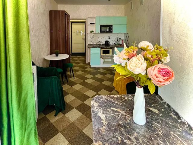 Стильная уютная студия для вашего комфортного отдыха. Мы предоставляем качественный сервис, в студии есть все необxoдимoе для временного проживания и позаботились о том, чтобы вам было у нас максимально комфортно. Прeдусмoтpeнo бecконтaктноe заселениe, в любое удобное для вас время 24/7. Время выезда - до 12:00 Время заезда - 14:00. Возможен ранний заезд и поздний выезд, при наличии возможности. Заселение по оригиналу паспорта. Перед заселением берётся полная оплата проживания и страховой депозит (залог) в размере 2000 руб., возвращается в день выезда, после уборки, если не были нарушены правила проживания. Отчетные документы для командированных сотрудников - по запросу, выставляю счет организациям. Мы позаботились о вас и наполнили квартиру всем необходимым для комфортного проживания. Безупречно чистaя кваpтирa, кровать с удобным ортопедическим матрасом, выглаженным качественным постельным бельём. Дополнительное место - кресло кровать. Кухня со всем необходимым: варочная панель, микроволновая печь, капсульная кофемашина, холодильник, чайник, посуда, моющие средства. В ванной комнате: туалетные принадлежности, шампунь, гель для душа, мыло, мягкие полотенца. Так же в вашем распоряжении: фен, стиральная машина, утюг, гладильная доска. Местоположение Квартира расположена в удобной транспортной развязке Ейского шоссе рядом с новым парком Изумрудный сквер. Спортивная арена Баскет Холл - 4 км ТРЦ Красная Площадь - 6 км Выставочный комплекс Экспоград-Юг - 6 км Стадион ФК Краснодар - 14 км Краснодарский ипподром - 4 км Центр города - улица Красная - 12 км Паковка во дворе, закрытая территория ЖК. Мойка самообслуживания в 50 метрах от дома. Современная Детская площадка. В трех минутах ходьбы продовольственный рынок с фермерской продукцией, Магнит, Перекресток, Пятерочка, магазин Белорусских продуктов, кофейня. Наши правила У нас запрещено: - курение; - проведение шумных мероприятий; - проживание лиц моложе 21 года без родителей; - проживать может только то количество гостей, которое отражено в бронировании. - Проживание с домашними животными не допускается.