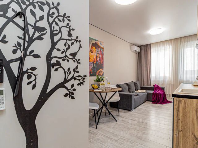 Подбираете уютную квартиру посуточно в Краснодаре? Дизайнерская студия делюкс - это идеальный выбор! Расположена в новом жилом комплексе комфорт-класса с благоустроенным двором-парком и детскими площадками! Охраняемая территория! Уникальное расположение: пешая доступность до прекрасного озера с лебедями и утками в Немецкой деревне, православный храм с ключевой водой на территории храма, ТРК Красная площадь, Европа Сити, Леруа Мерлен, Экспоград Юг, ТЦ Сыр, Баскет Холл, Дворец самбо. 30 минут до центра Краснодара! 11 км от комплекса Микрохирургия Федорова, ботанический сад КубГАУ( ходит 4 троллейбус ) Гости могут доехать до Автовокзала троллейбусным маршрутом 4. ОБРАТИТЕ ВНИМАНИЕ - ПАРКОВКИ НЕТ! С ЗАБОТОЙ И ВНИМАНИЕМ К ВАМ: -в квартире есть вся бытовая техника и мебель ( фен, утюг, гладильная доска, стиральная машина, плита, холодильник, микроволновая печь, кондиционер, обеденная зона, шкаф и т.д.); - продуманная система сна: кровать двуспальная, диван двуспальный - раскладывается в кухне-гостиной; -белоснежно-ароматные полотенца и постельное белье; -одноразовые косметические принадлежности, шампунь, гель, зубные наборы, одноразовые тапочки. ПРАВИЛА ПРОЖИВАНИЯ: - количество гостей - 4 чел.; - можно с детьми - да; - курение - запрещено; - проживание с животными - запрещено; - вечеринки - запрещены. ПРАВИЛА ЗАЕЗДА: - стоимость указана за 1 чел.; - ДОПЛАТА за чел. - 100р. (за сутки); - заселение с 15:00ч. / выезд до 12:00ч.; - ранний заезд и поздний выезд - возможен только с ДОПЛАТОЙ по предварительному согласованию с менеджером; - страховой ДЕПОЗИТ - 3000р. - ДЕПОЗИТ возвращается после выезда, при условии, что правила проживания нарушены не были. (Правила проживания см. выше). - заселение удаленно! - оплата - онлайн! - наличными не принимаем! - после оплаты менеджер высылает вам код! Вы заселяетесь в любое удобное время после 15.00ч., никого не ожидаете. Это очень удобно! Влюбляем в Юг России!