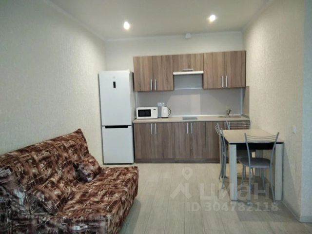 Кухня- площадью 14м2, укомплектована раскладным диваном (шириной 140см) обеденным столом с 4мя мягкими стульями, кухонным гарнитуром со встроенной электроплитой, духовым шкафом, холодильником, СВЧ- печью, электрочайником, набором посуды для приготовления и употребления пищи на 6 человек, ЖК телевизор со спутниковыми каналами, сплит-система и теплым пол. Стулья для балкона.