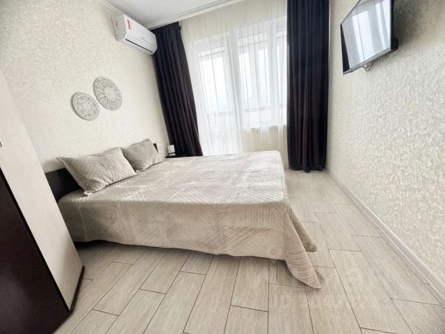 Спальная комната площадью 20м2, с панорамным окном с видом на море. Комната имеет следующее оснащение: двуспальная кровать на 2 чел. (ширина 160см), раскладной диван на 2 чел. (шириной 160см.), прикроватная тумбочка, журнальный столик, шкаф для одежды с полочками и вешалками, утюгс гладильной доской, фен, сушилка для белья, ЖК телевизор со спутниковыми каналами, сплит-система и теплым пол.