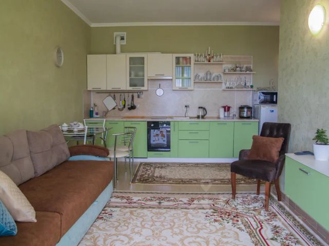 Сдаётся квартира (евродвушка) в курортном посёлке Небуг. Новая мебель и техника, есть все для комфортного проживания, включая, посуду, постельное белье, интернет и смарт ТВ. Комфортно разместится до 5и человек. Кровать с ортопедическим матрасом (независимый пружинный блок, орматек - 20т.р.), диван-кровать (140*200), доп. Спальное место 80*200. До моря 20 минут пешком, прогулочным шагом, по ровной дороге, в шаговой доступности сетевые магазины (пятёрочка, магнит, торес), аптеки, рестораны, аквапарк, дельфинарий, озеро. За домом идёт строительство, возможен шум.