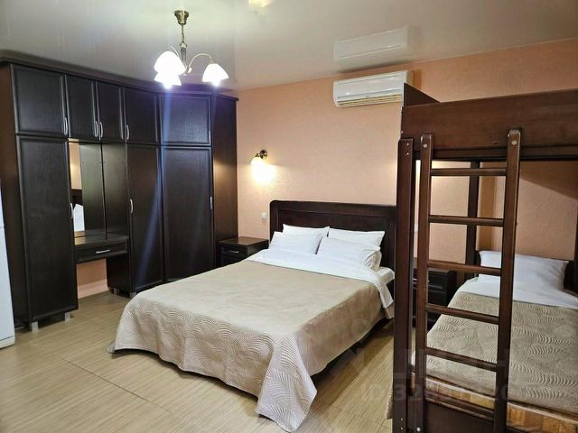Малая спальная комната площадью 9м2. Укомплектована двухъярусной кроватью на 2 чел., шкафом для одежды и телевизором с цифровым tv. Теплый пол.