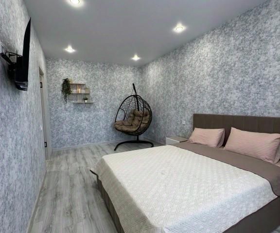 Спальня: большая двуспальная кровать (ширина 1,6 м), комод, телевизор, сплит-система, на полу теплый палас, чистое постельное бельё.