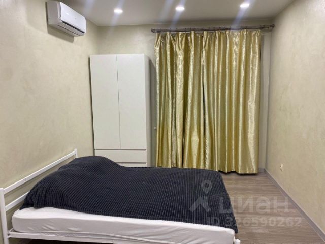 Спальная комната оборудована новым красивым гарнитуром (двуспальная кровать с ортопедическим матрасом, вместительный шкаф, тумбочка). Установлен телевизор, инверторная сплит-система. Под телевизором также есть тумбочка. Помимо этого в спальне установлены качественные шторы Блэк аут, не пропускающие свет, сильную жару летом.