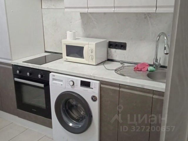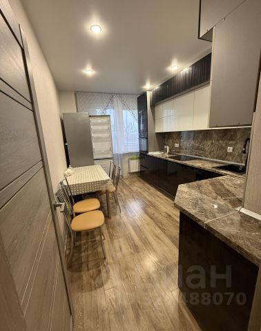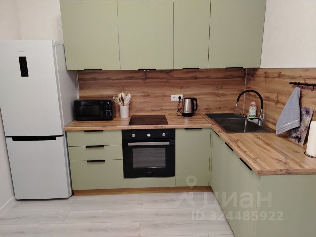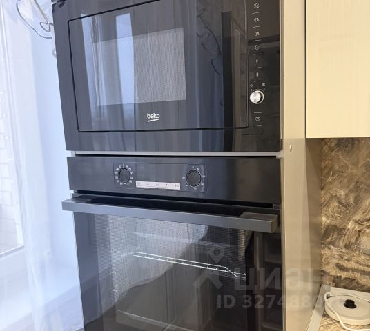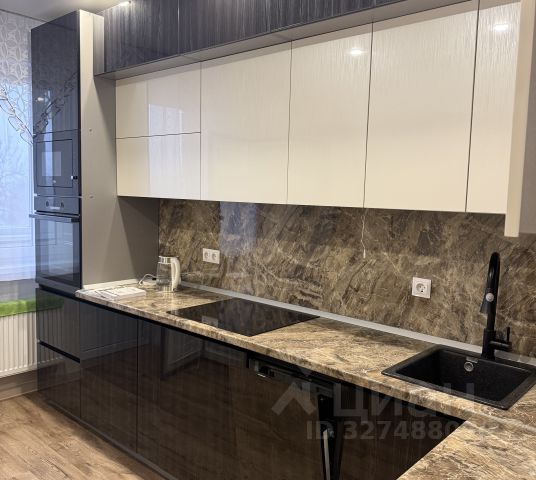На кухне имеется очень красивый, продуманный до мелочей, вместительный, 3-х ярусный кухонный гарнитур со встроенной техникой (посудомоечная машина, индукционная плита, вытяжная система, духовой шкаф и микроволновая печь). На противоположной стороне установлен вместительный холодильник с системой NO FROST, стол и стулья.